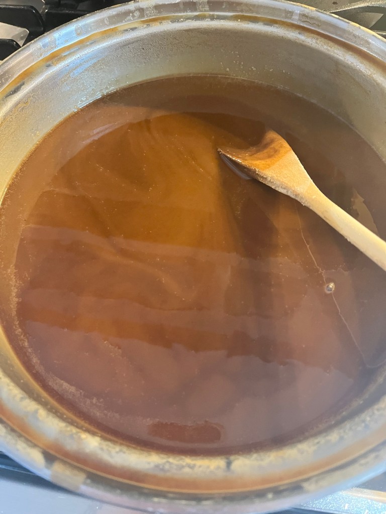 This is as dark as I let it get- was getting nervous. I could not stand by the stove for another 1 1/2 hours!